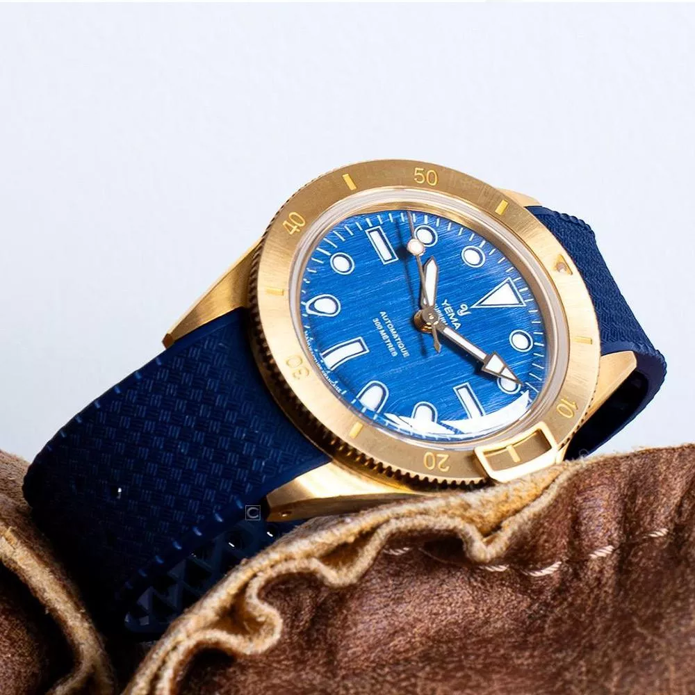 • 2 條優質 FKM 橡膠錶帶(藍色和白色),青銅色錶扣。