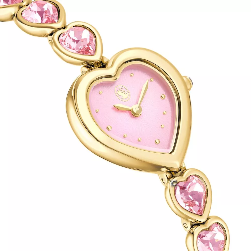 這款充滿熱情的 Swarovski 時計採用覆以金色調飾面的不鏽鋼材質精心打造,閃耀著浪漫光芒。心形錶殼框住粉紅色太陽光紋錶盤,而縈繞手腕的是以 10 個心形鏈節組成的錶鏈,每個鏈節皆鑲嵌一顆亮麗的粉紅色 Swarovski 水晶,讓錶款更顯獨特。這款瑞士製錶款防水深度達 50m,隨時準備好讓您的風格洋溢著愛。