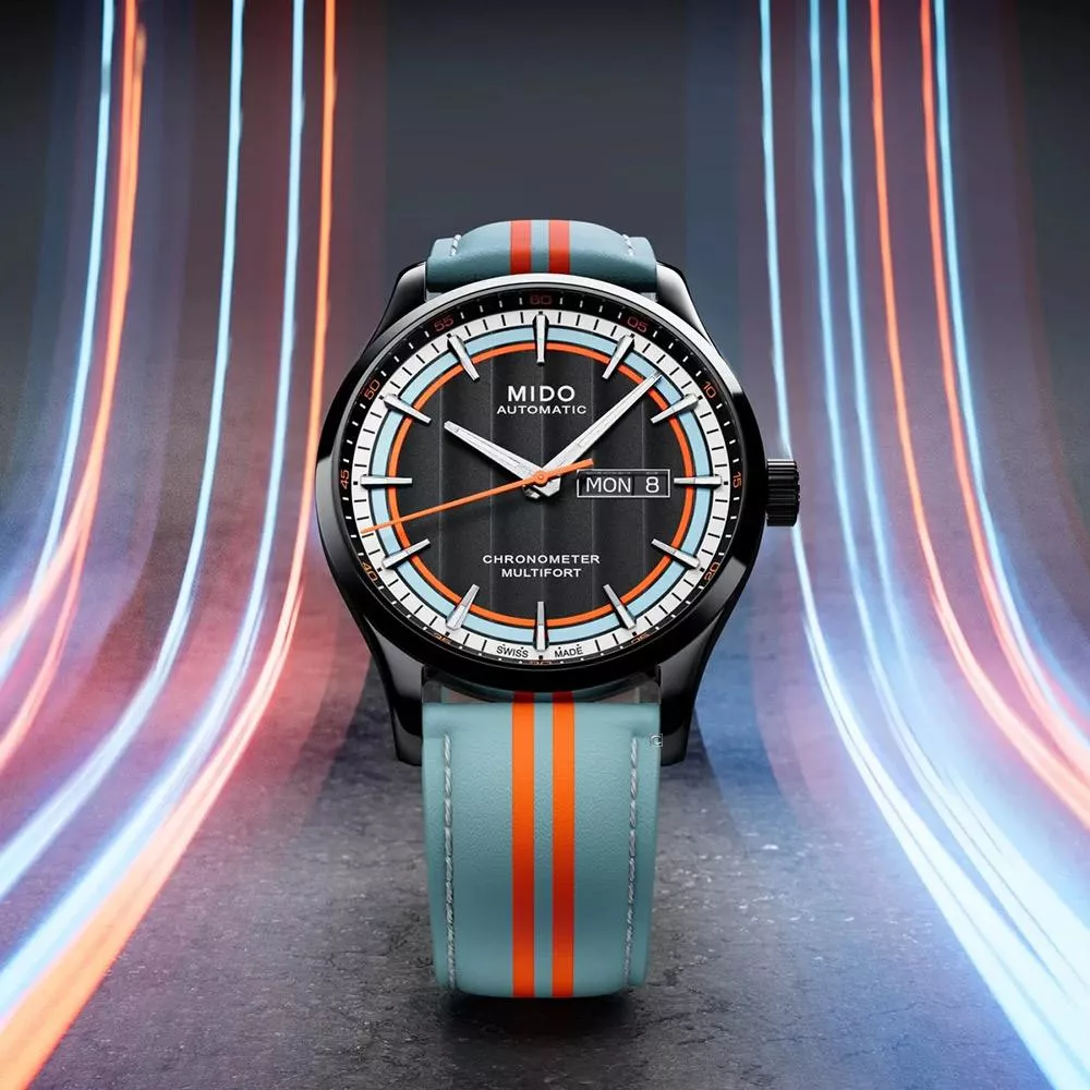 Multifort Chronometer 瑞士腕錶採用了該系列特有的日內瓦波紋,這款運動型時計配備美度 Calibre 80 SI 自動上鍊機芯,該機芯透過矽游絲,具有更加出色的走時準確性和抗撞擊力。