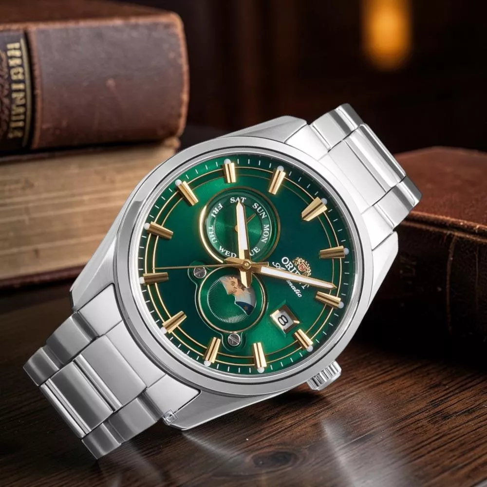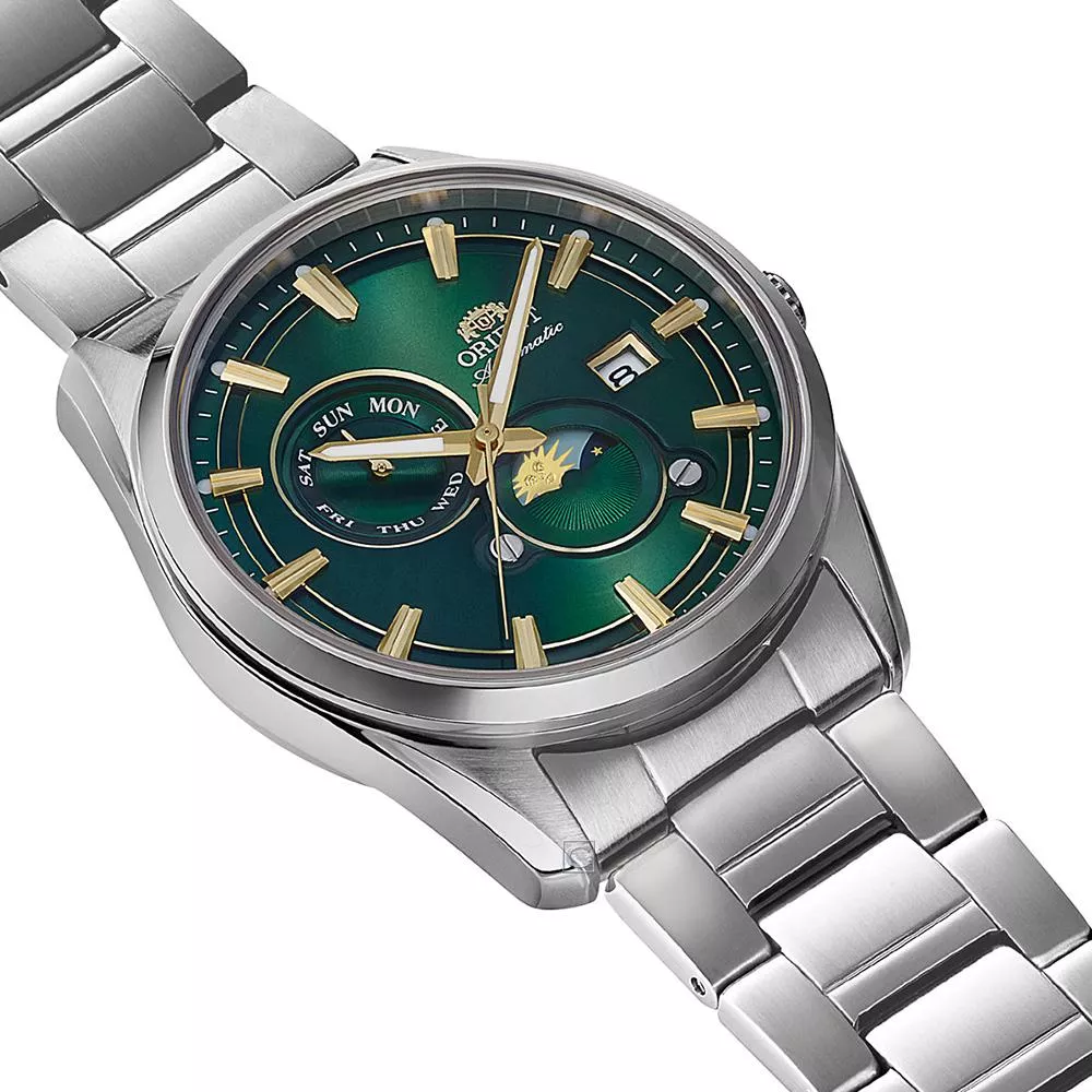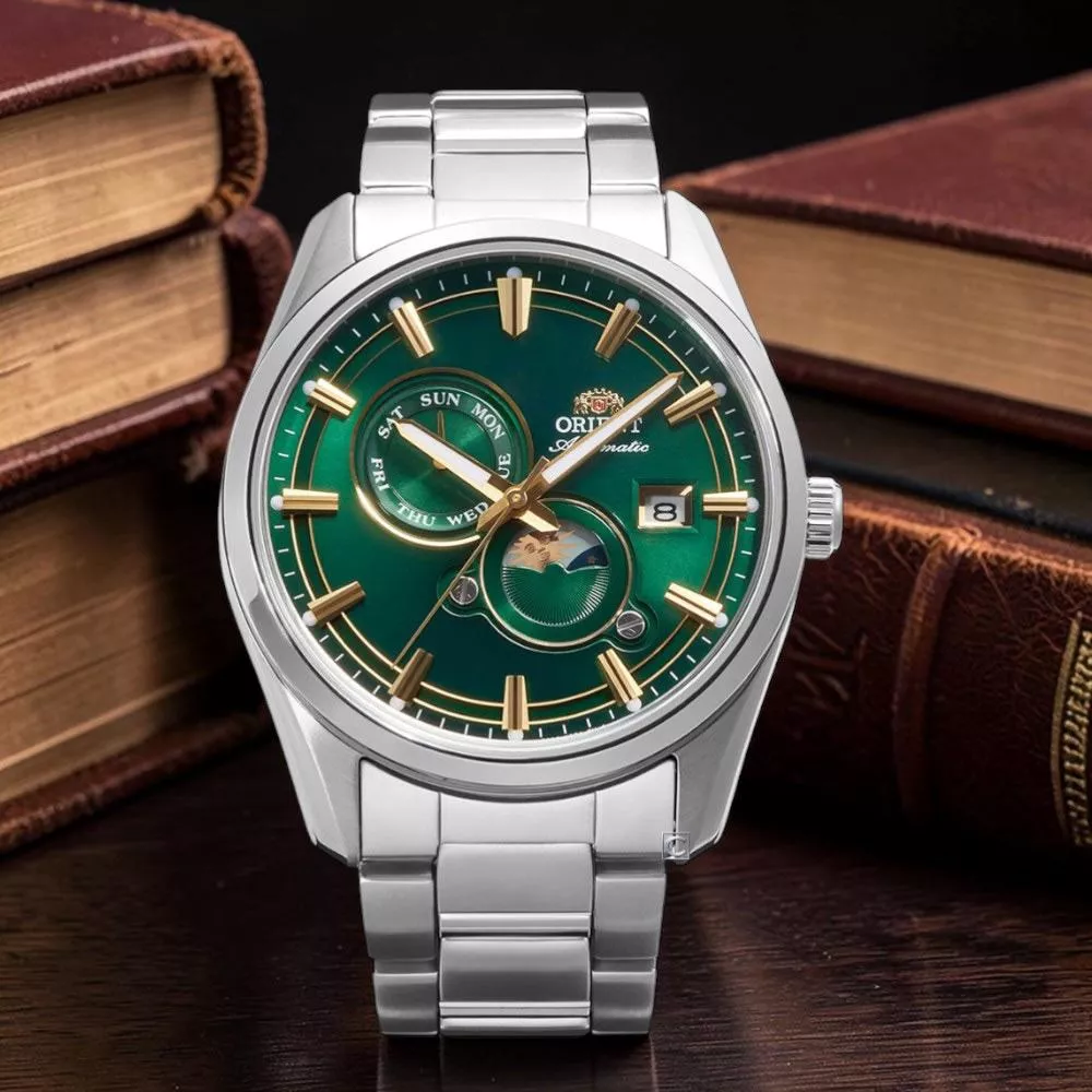 ORIENT 東方錶 SUN&MOON系列 晝夜顯示機械腕錶 男錶 手錶-RA-AK0314E/綠41.5mm
