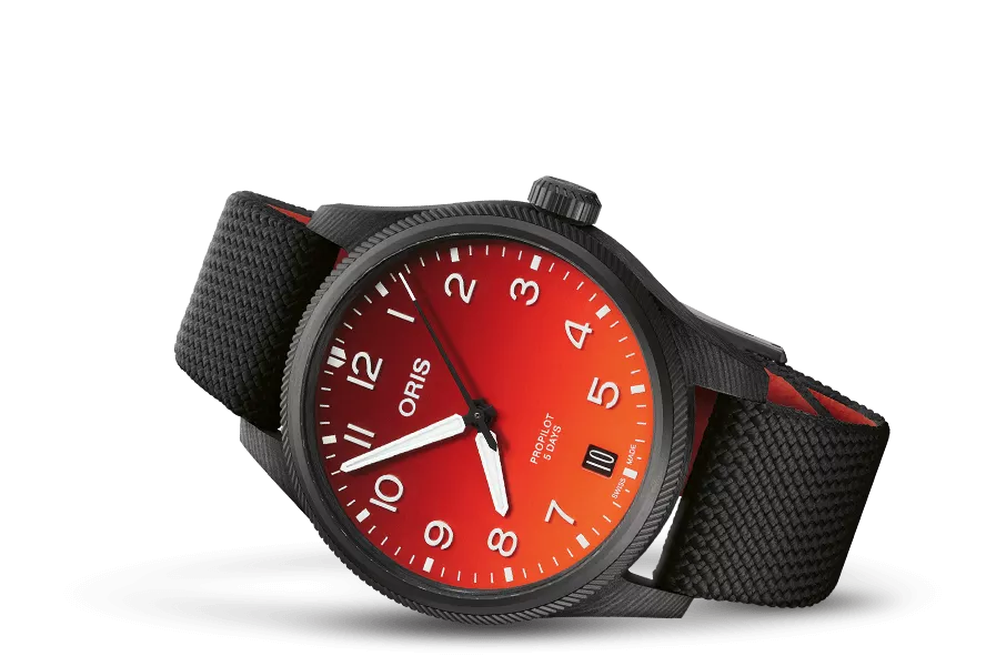 Coulson Aviation在空中消防有著重要的領導角色,我們很榮幸能與他們合作。獨特的限量ProPilot腕錶,錶殼以創新的碳纖維結合3D列印工藝製成,並以熾熱的漸變橙紅色設計面盤。
