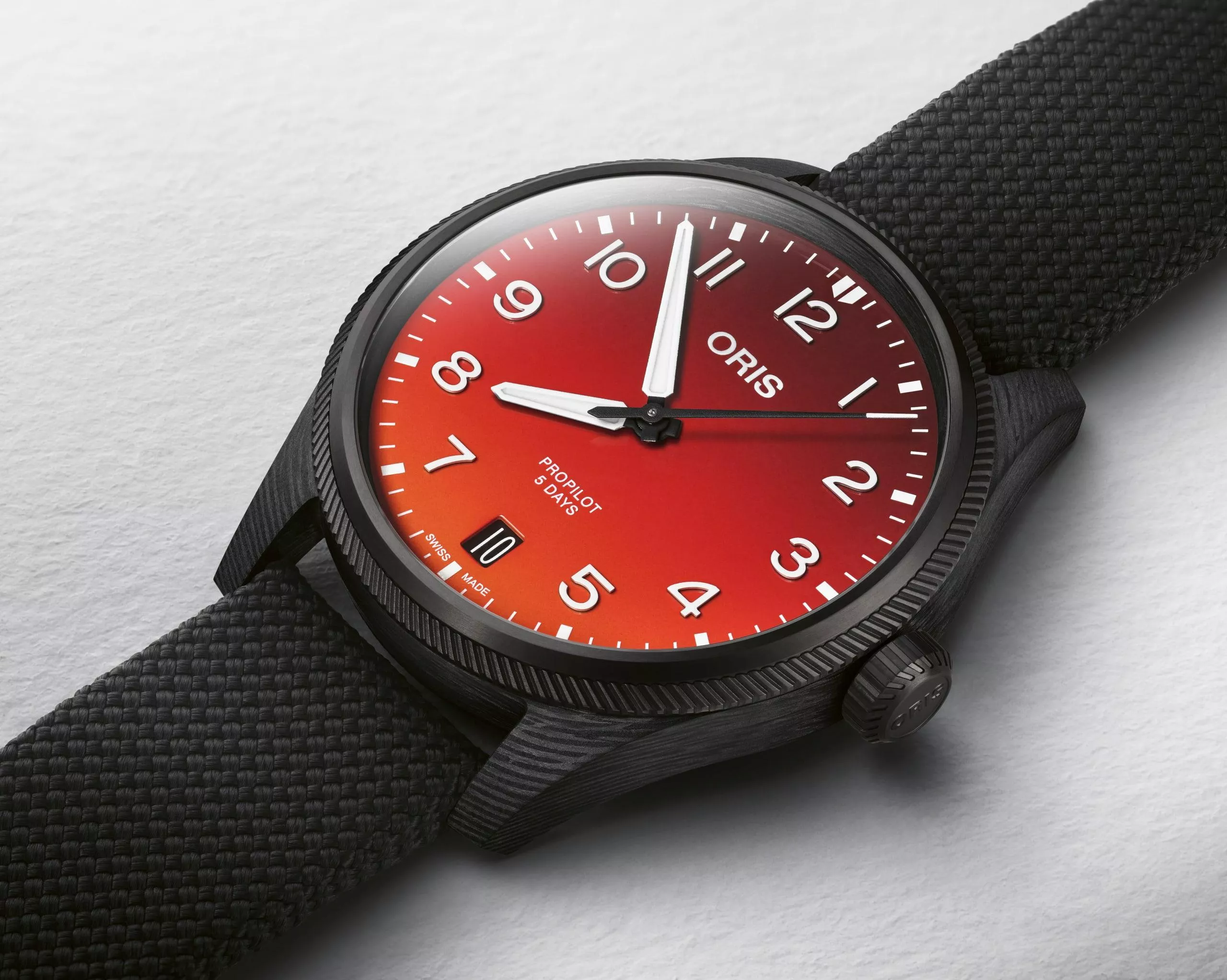 Coulson限量腕錶是與9T Labs合作開發,採用他們創新先進的3D列印和模具製造技術,讓我們可以控制碳纖維紋理的最終外觀,而Oris也是第一間在鐘錶製造中應用此技術的品牌。