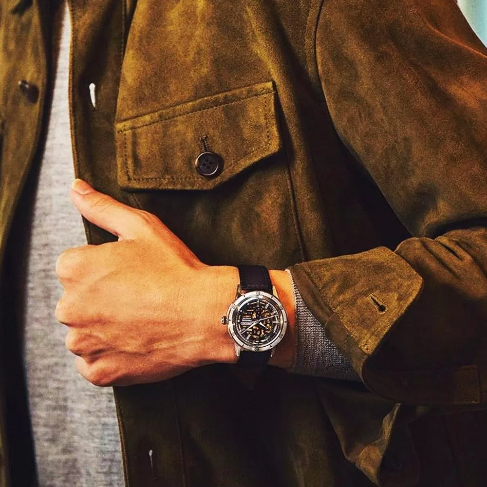 錶款以復古重機的引擎散熱片為設計靈感,