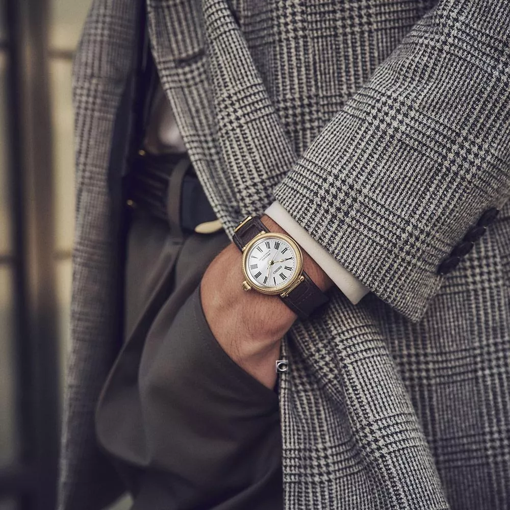 精細的羅馬數字時標不僅展現古典魅力,同時確保極高的判讀性。復古的箱型鏡面設計,使整體更加富有層次感。