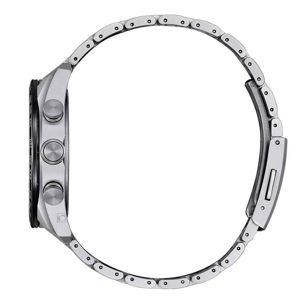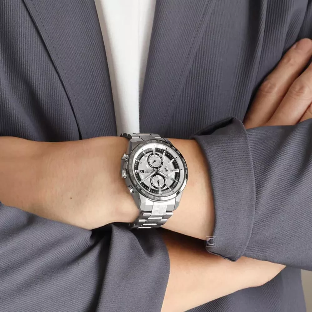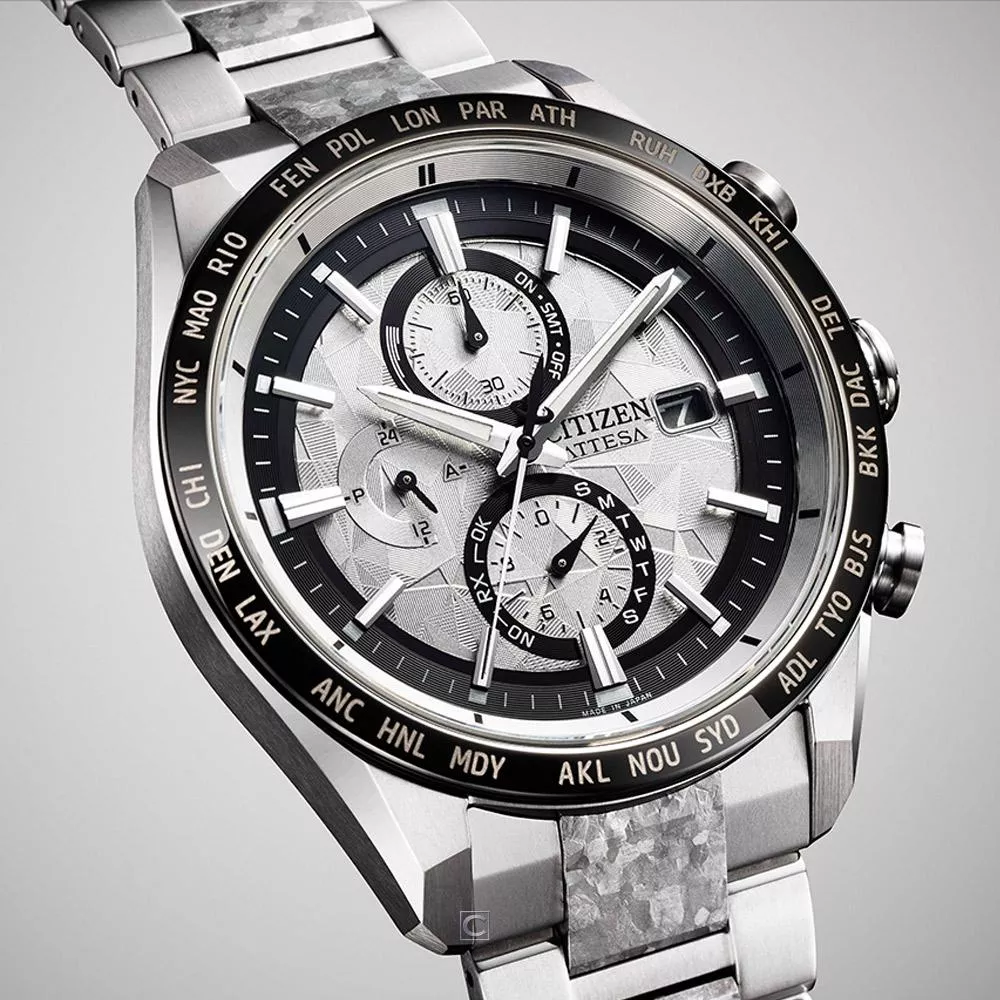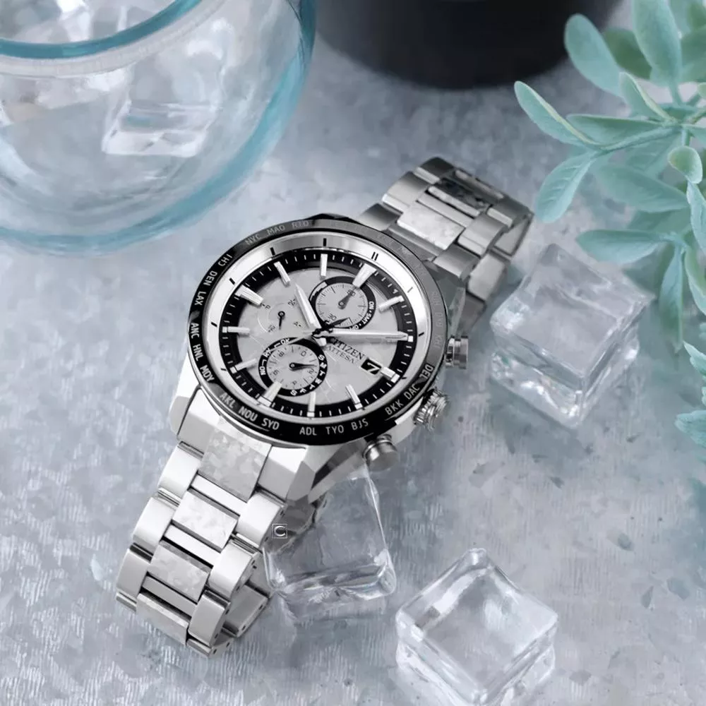 Platinum Shine 系列腕錶以 Duratect Platinum 技術打造,展現夜空中銀月的柔和光芒。再結晶鈦金屬一種利用高溫熱處理再經過冷卻過程製成的材質。這種處理使金屬結構不均勻,於表面形成與眾不同的晶體圖案。每枚腕錶的晶體圖案皆獨一無二,如同大自然中礦物所展現的天然紋理般獨特。製造再結晶鈦金屬是一項複雜的過程,需要豐富的專業技術知識來處理材質在高溫處理過程中因膨脹而產生的變化。2025年是CITIZEN推出全球首款鈦金屬腕錶55週年。這些限量特別款腕錶的錶帶的中間部分採用獨特的再結晶鈦金屬材質。