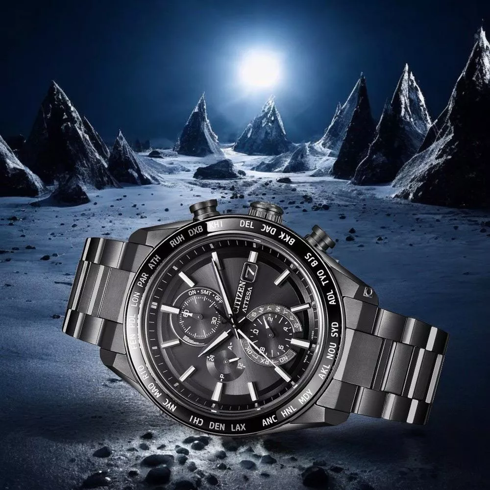 灰色錶盤上,垂直三寄存器計時碼錶正在發揮作用,其應用細節除了 3 點鐘位置日期顯示的實用性之外,還增添了立體感。其他進階功能包括 26 個時區的世界時間、帶有星期和日期指示器的萬年曆、12/24 小時計時以及動力儲存顯示。這款無線電遙控腕錶具有光動能原子計時功能,在海外旅行時可透過接收四個不同地區的當地時間訊號來自動調整時間或日曆。