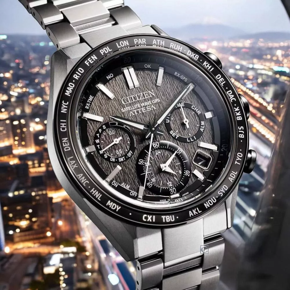 錶盤上有髮絲紋和金屬塗層,營造出金屬般的質感。錶圈採用藍寶石玻璃,散發著光澤的光澤。銀色蒸鍍包裹的城市名稱將裝飾您的手。錶殼和錶帶均為銀色。錶圈、按鈕和錶冠均採用黑色設計。銀色與黑色的對比賦予它運動感,也賦予它成熟的個性。