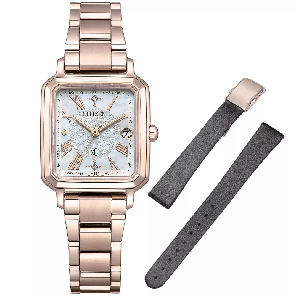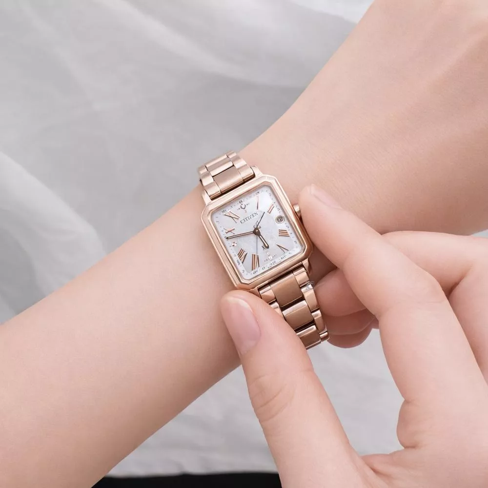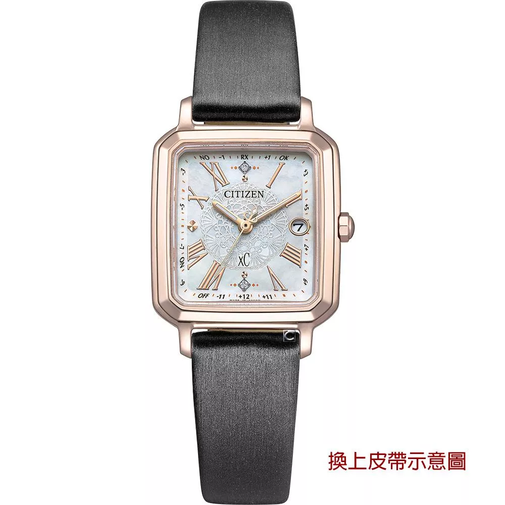 CITIZEN 星辰錶 xC 櫻花粉色方形 電波 光動能 女錶-ES9506-54N