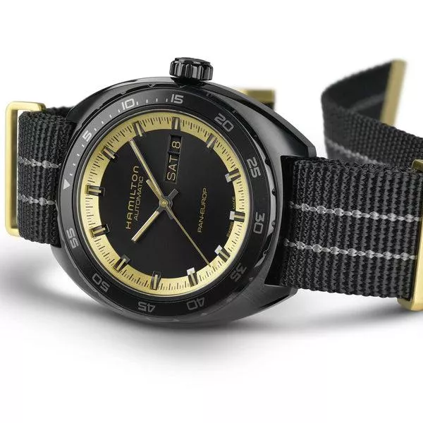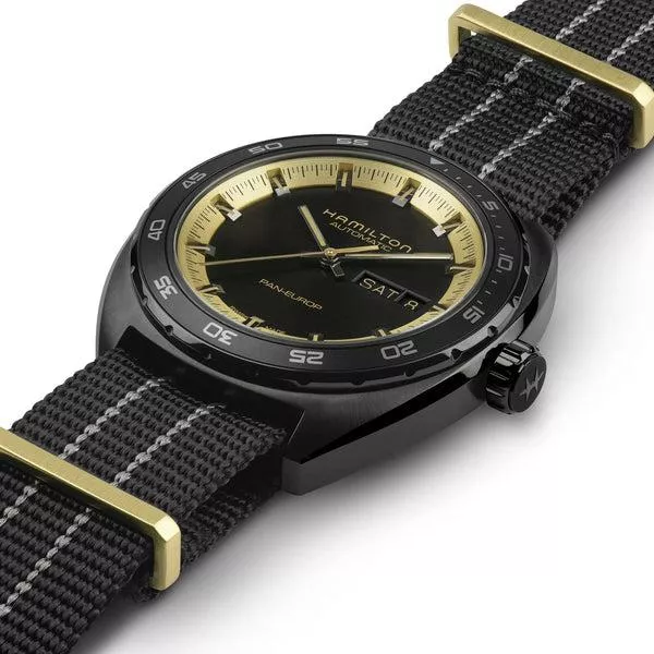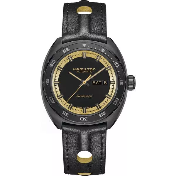 Hamilton 漢米爾頓美國經典 PAN EUROP 黑金配色機械腕錶星期日曆腕錶 H35425730
