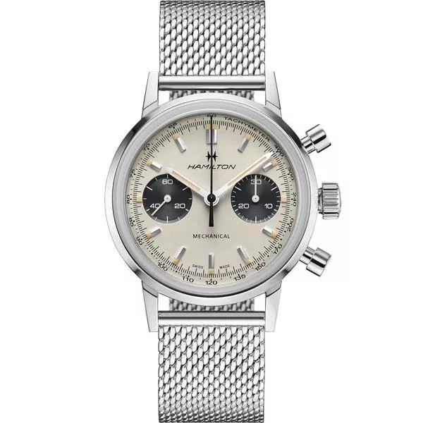 Hamilton 漢米爾頓 美國經典 白熊貓黑皮帶 Intra-Matic 手上鍊計時機械錶 H38429110 40mm