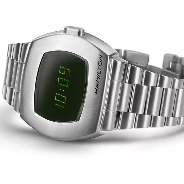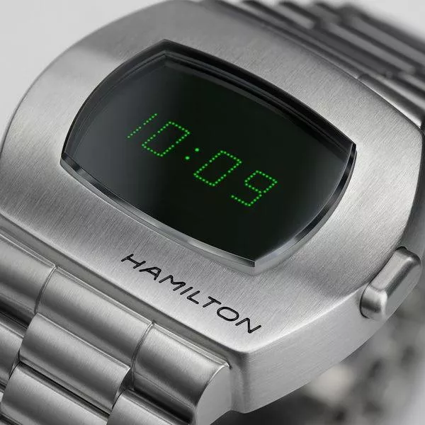 1970年,漢米爾頓呈獻史上首款跳字腕錶,開啟創新歷程。如今,品牌煥新演繹經典PSR跳字石英腕錶,延續傳奇篇章。跳字顯示結合LCD和OLED技術,綠色圓點數字在日間一目了然,晚上一按按鈕即可清晰讀時。