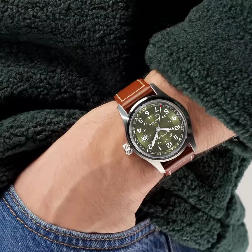 卡其陸戰系列自動上鍊腕錶的靈感源自原創軍用腕錶,結合傳統軍事元素和當代設計於一身,適合時尚先鋒在任何場合佩戴。卡其綠色太陽線紋錶盤的小時圈設有蝸紋,流光溢彩,具備紋理質感和設計深度。專為活動和冒險而設,獨特的H-10自動上鍊機芯提供80小時動力儲存,絕不令你失望。 探索我們的卡其陸戰系列。
