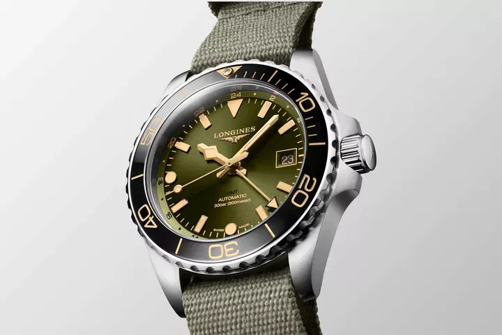 深海征服者系列(HydroConquest)GMT腕錶的錶殼直徑為41毫米,採用高質不鏽鋼材質,配備旋入式錶底和錶冠,展現出獨特的時尚風格。此款腕錶特別採用綠色陶瓷單向旋轉錶圈,上面刻有清晰的刻度並帶有夜光效果。錶盤設計以綠色為主調,您可以選擇不鏽鋼錶帶或回收材質製成的綠色NATO錶帶,以配合您的個人風格。為腕錶增添了活力。