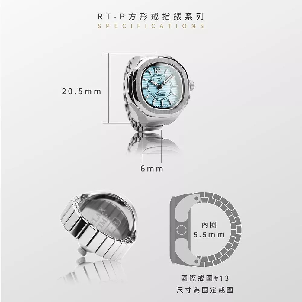 RELAX TIME 方形戒指錶-湖水方形 (RT-P-02)