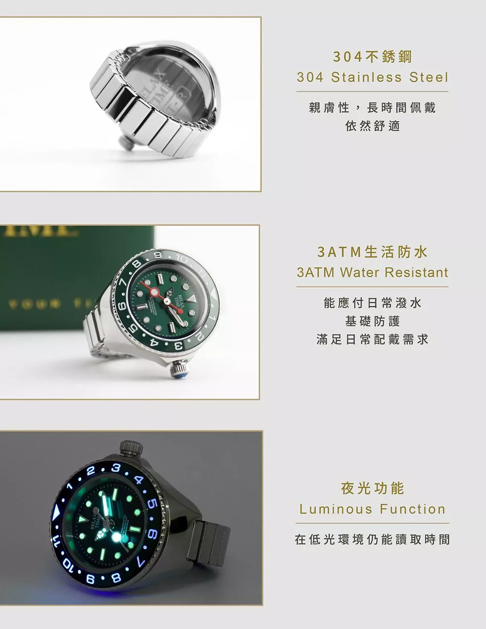 RELAX TIME 水鬼戒指錶-綠水鬼 (RT-R-02)