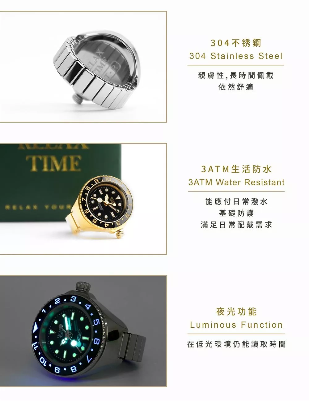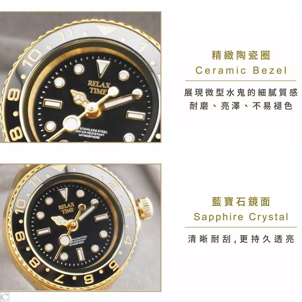 RELAX TIME 水鬼戒指錶-黑圈金水鬼 (RT-R-06)