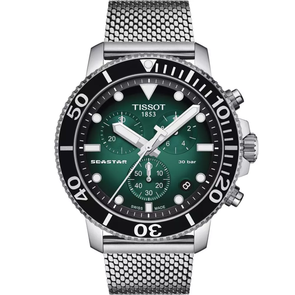 TISSOT 天梭錶 Seastar 海星300米潛水計時腕錶(T1204171109100)綠/45.5mm米蘭帶