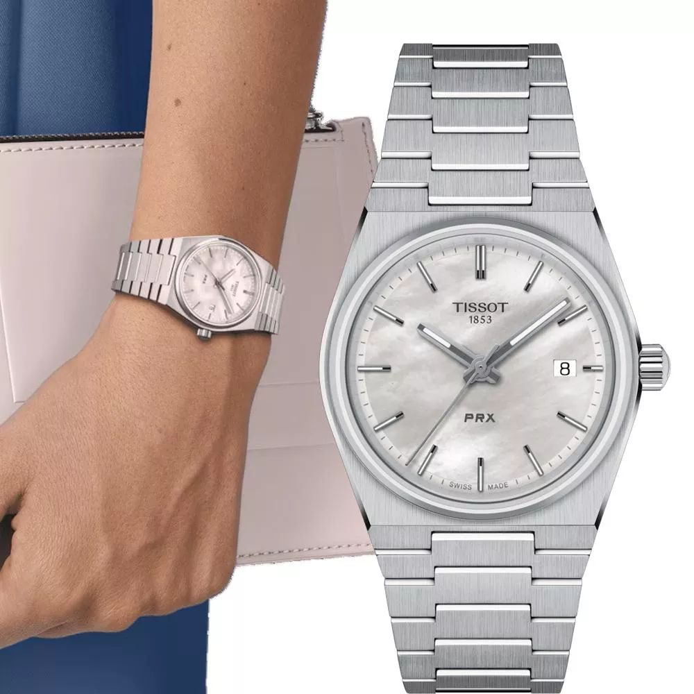 TISSOT 天梭 官方授權 PRX 手錶 女錶 珍珠母貝 -35mm 手錶 慶端午 包粽 指針錶-T1372101111100