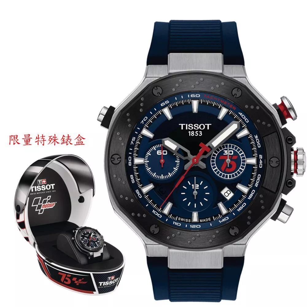 MotoGP的刺激與天梭的熱情密不可分。天梭(Tissot) 慶祝作為錦標賽官方計時器四分之一個世紀,並向MotoGP™ 75 年的傳統致敬,推出這款獨特的T-Race MotoGP™ 腕錶,以紀念雙方良好的合作關係和那些重要的里程碑。 一隻眼睛盯著時鐘,另一隻眼睛盯著路。 這款手錶採用獨特的藍色和紅色色調裝飾,具有煞車碟盤、車把靈感推動裝置和引擎散熱片等設計線索。 自動 Valjoux 車型配備黑色 PVD 錶圈和半透明錶盤,展示一些複雜的機械裝置。 這款腕錶具有防水功能,時針和分針均塗有 Super-LumiNova® 夜光塗層,在任何情況下均清晰易讀。 這款手錶採用迷你頭盔包裝,非常適合那些正在尋找能夠代表自己喜愛的運動的愛好者。