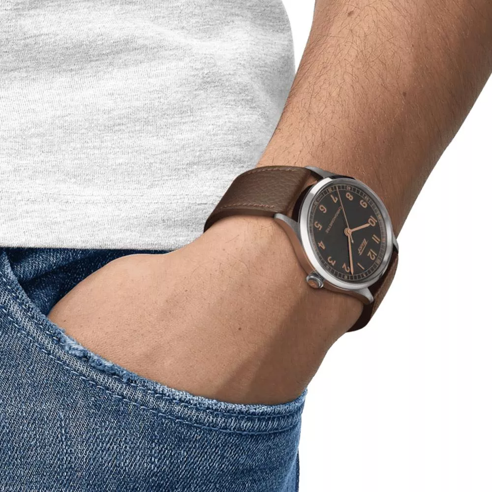 搭載瑞士天文台認證ETA 2824-2 COSC 自動上鍊機芯,細緻古典的錶身線條,完美呈現天梭表170年的製錶工藝。柔軟的噴砂錶面有兩款特殊新色:鮭魚粉及煙煤灰,皆令人選擇困難;浮雕阿拉伯數字時標,配上立體紋路皮革錶帶,呼應著 20 世紀 30 年代難以忘懷的簡約魅力!