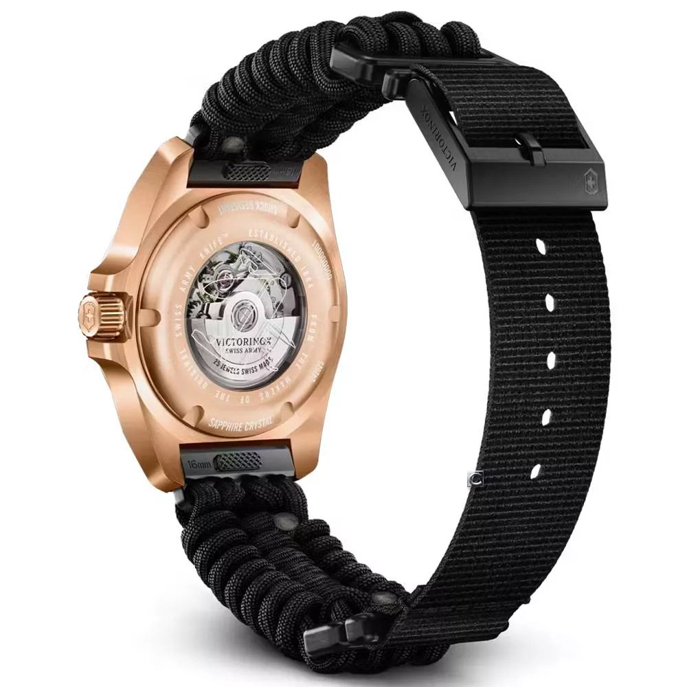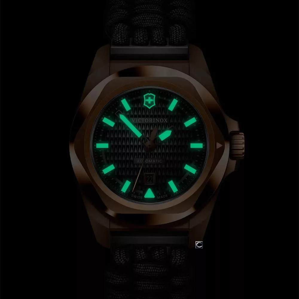 I.N.O.X. Small Automatic 腕錶以精巧高雅的細節、創新的構造和系統性的技術為特色。這款腕錶盡顯原創 Swiss Army Knife™ 的精髓,以同樣嚴謹的瑞士技術,巧妙地平衡風格與外型。這款腕錶的經典錶圈採用了獨特的立體設計,展示底蓋則顯示腕錶的內部結構,美觀優雅。防水深度達 100 米,通過 ISO 認證的防撞保護和可替換的傘繩錶帶,無論任何環境氣候都能佩帶,彰顯其堅固可靠的承諾。