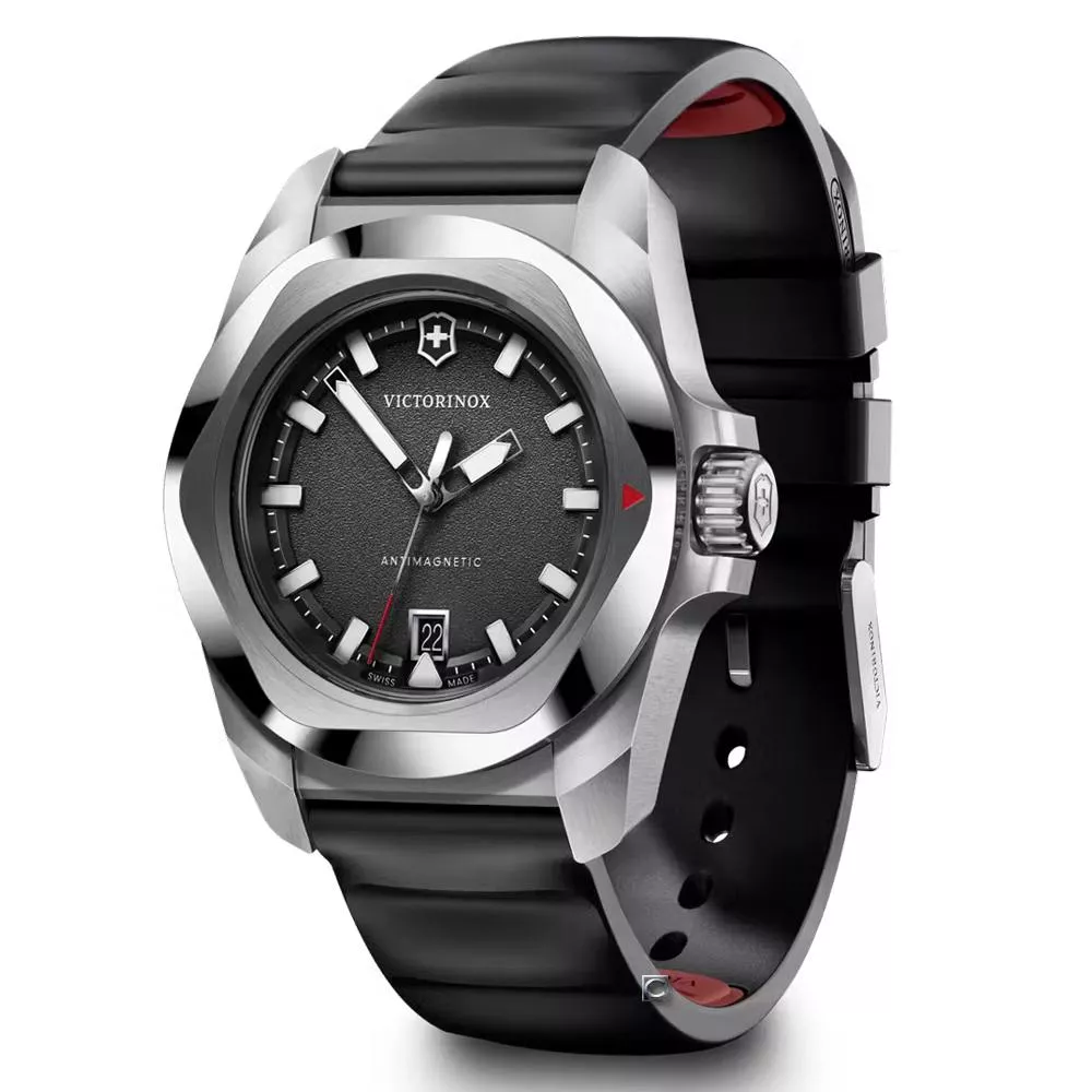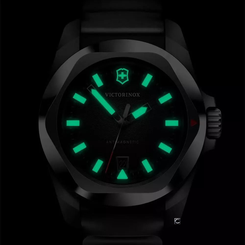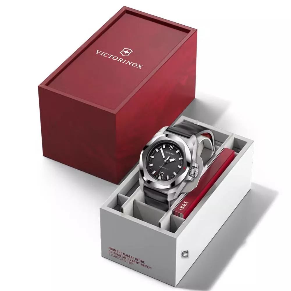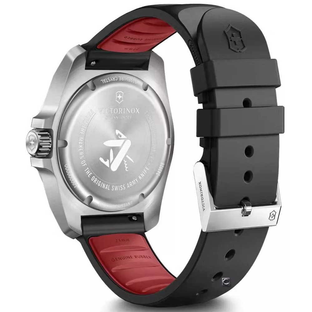這款腕錶體現了原創 Swiss Army Knife™ 的傳統,並以獨特的設計元素重新演繹,為未來帶來新意。I.N.O.X. Quartz 石英腕錶於瑞士設計和製造,結合精準技術與日常功能。腕錶配備啞光錶盤及立體標誌與夜光指針,日夜皆可清晰易讀,並於 6 點鐘位置設有顯示日期功能。拉絲及拋光錶圈經過防刮處理,為腕錶增添高雅氣息,而可替換的橡膠錶帶設計則確保百搭易襯,而且佩戴舒適。