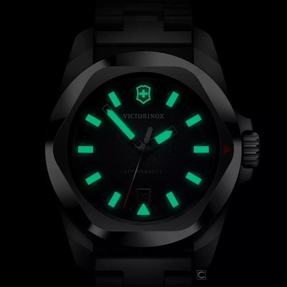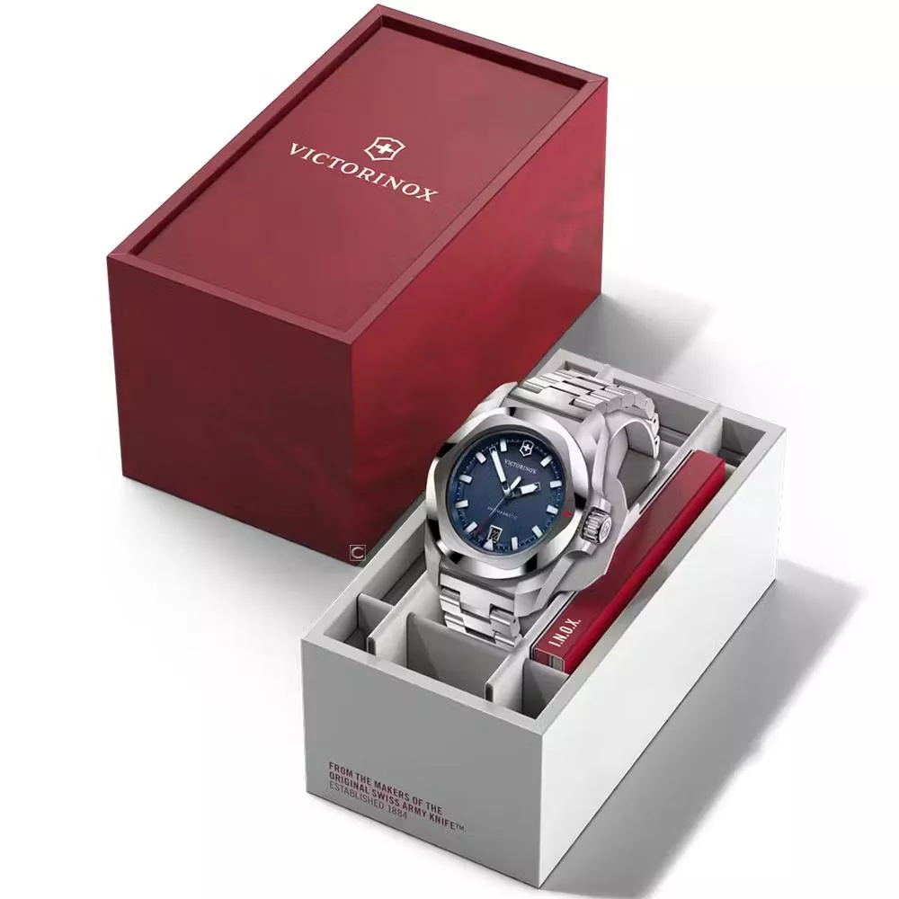 這款腕錶體現了原創 Swiss Army Knife™ 的傳統,並以獨特的設計元素重新演繹,為未來帶來新意。I.N.O.X. Quartz 石英腕錶於瑞士設計和製造,結合精準技術與日常功能。腕錶配備啞光錶盤及立體標誌與夜光指針,日夜皆可清晰易讀,並於 6 點鐘位置設有顯示日期功能。拉絲及拋光錶圈為腕錶增添高雅氣息,而可替換的精鋼錶帶則確保百搭易襯,而且佩戴舒適。
